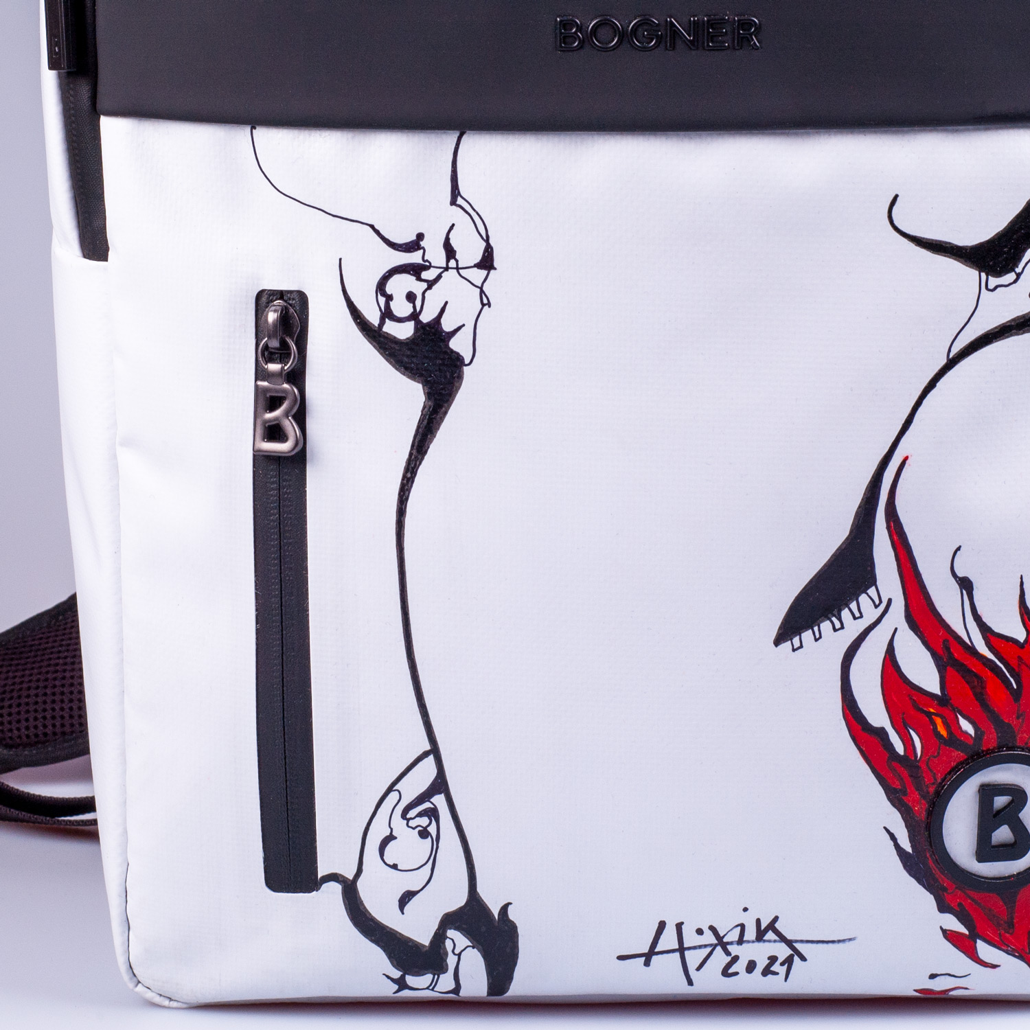 Der zeitlose und robuste Rucksack von Bogner wurde durch SHARK mit speziellen Lederfarben künstlerisch veredelt.